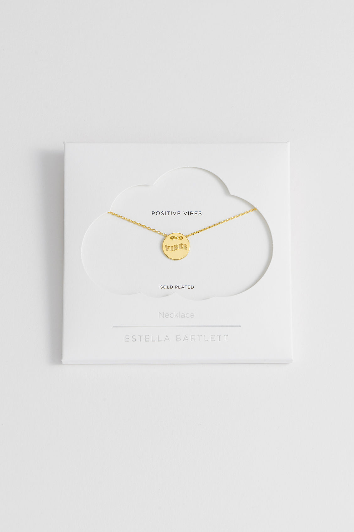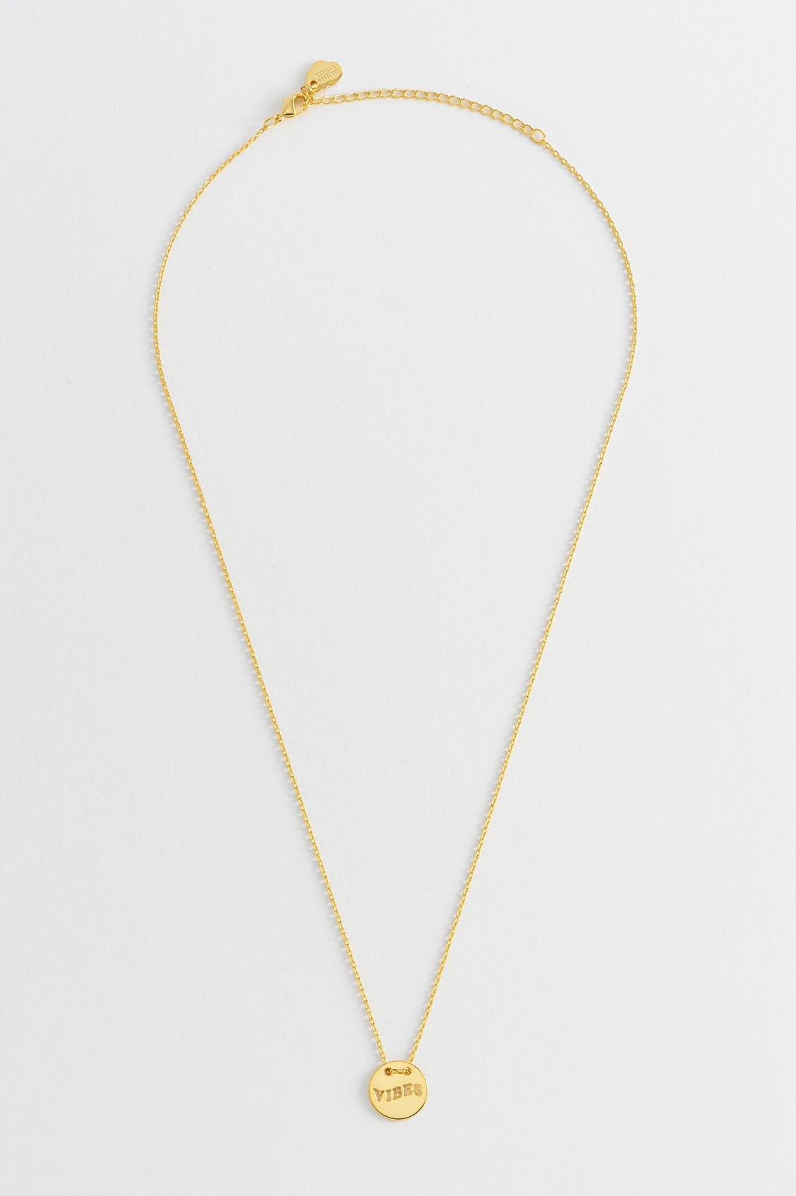 Good vibes only. Our gold plated Vibes Cut Out Disc Necklace is the perfect accessory for those who want to spread the positive vibes. Alternatively, gift this necklace to your loved ones to share your positive energy.
