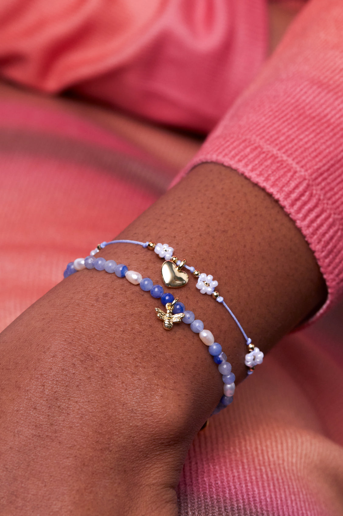 Bee happy with our gold-plated Gemstone Pearl Bee Bracelet. Featuring blue aventurine gemstones, a calming and tranquil stone, with pearls dotted inbetween and a dainty bee charm, this bracelet is perfect for nature lovers and those looking to add colour to their look.
