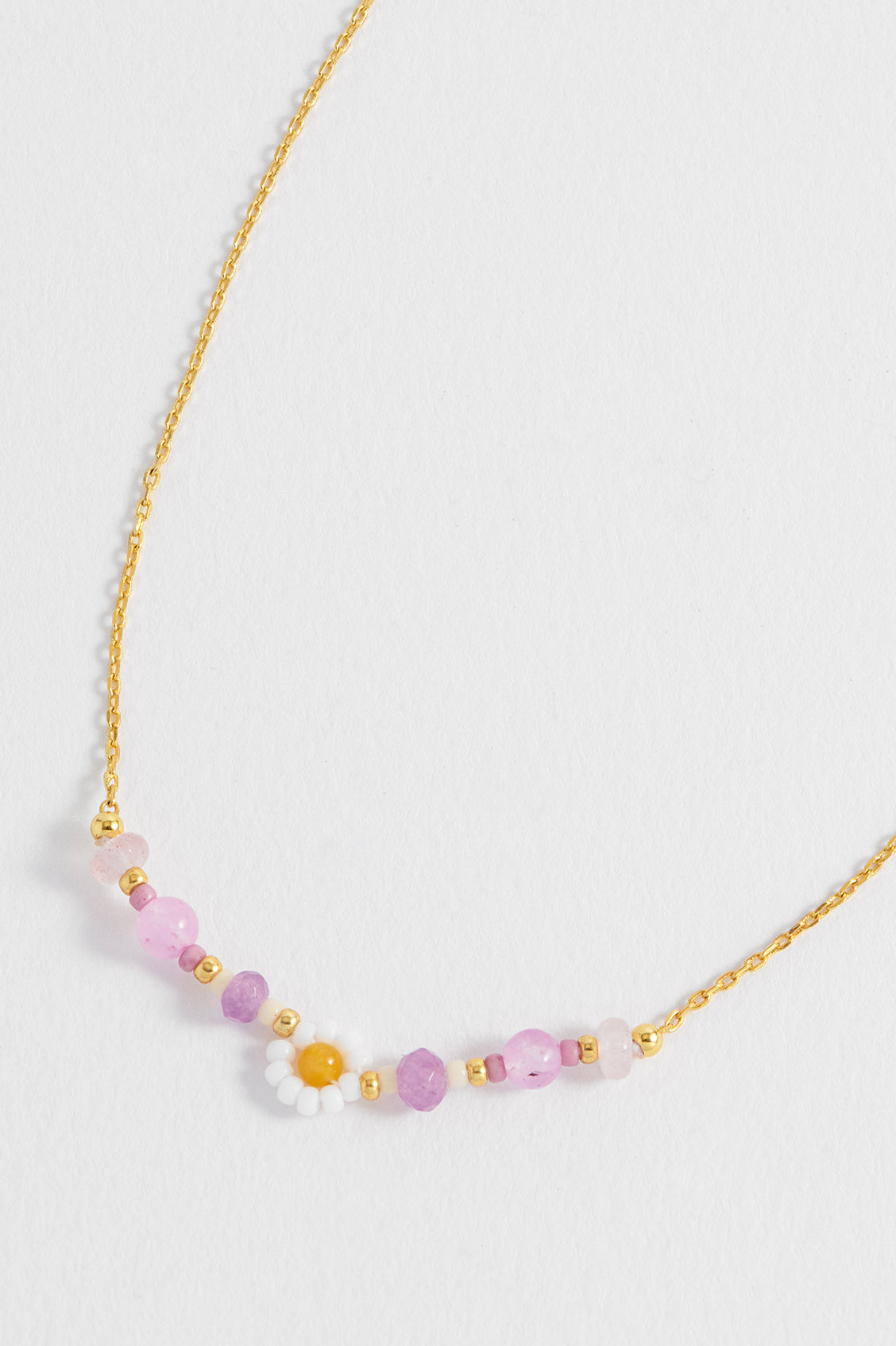 Keep blooming with our Beaded Flower Necklace. Featuring an adorable beaded daisy surrounded by gold-plated beads and colourful gemstones, including Rose Quartz and Jade, this playful piece will bring a smile to anyone who wears it.