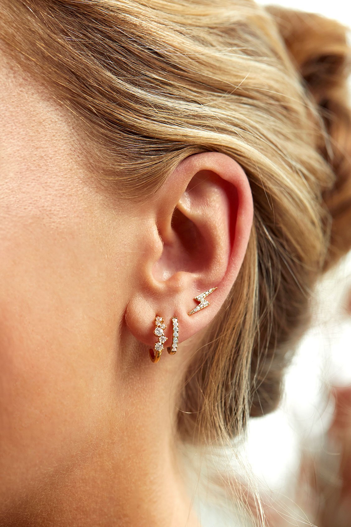 A classic hoop with white CZ, available in silver and gold plating adds effortless chic to any outfit.