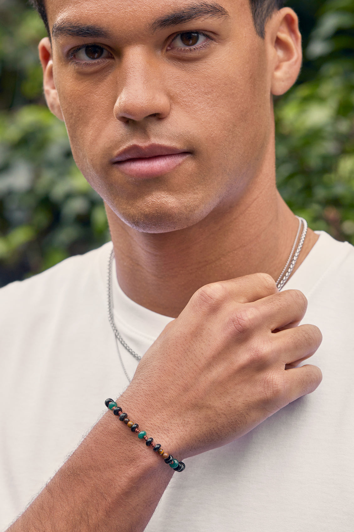 Waterproof PVD Rhodium Plated | Tigers Eye, Black Onyx and Green Agate