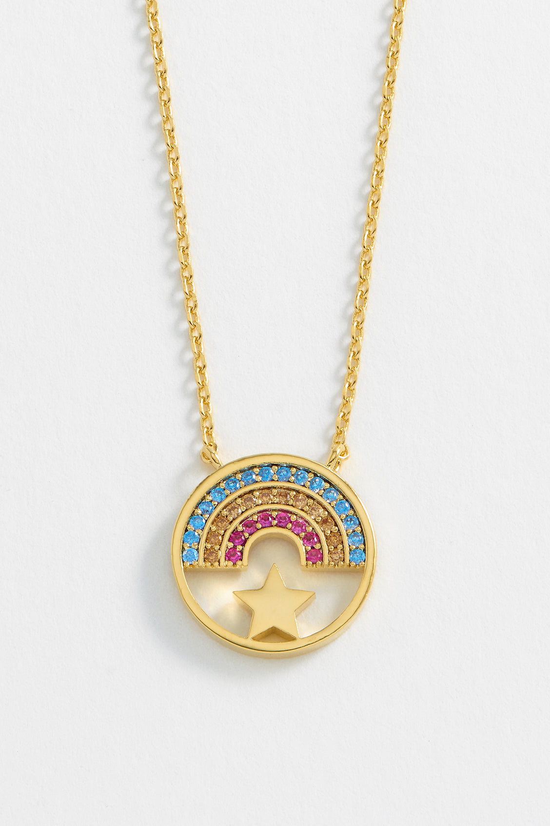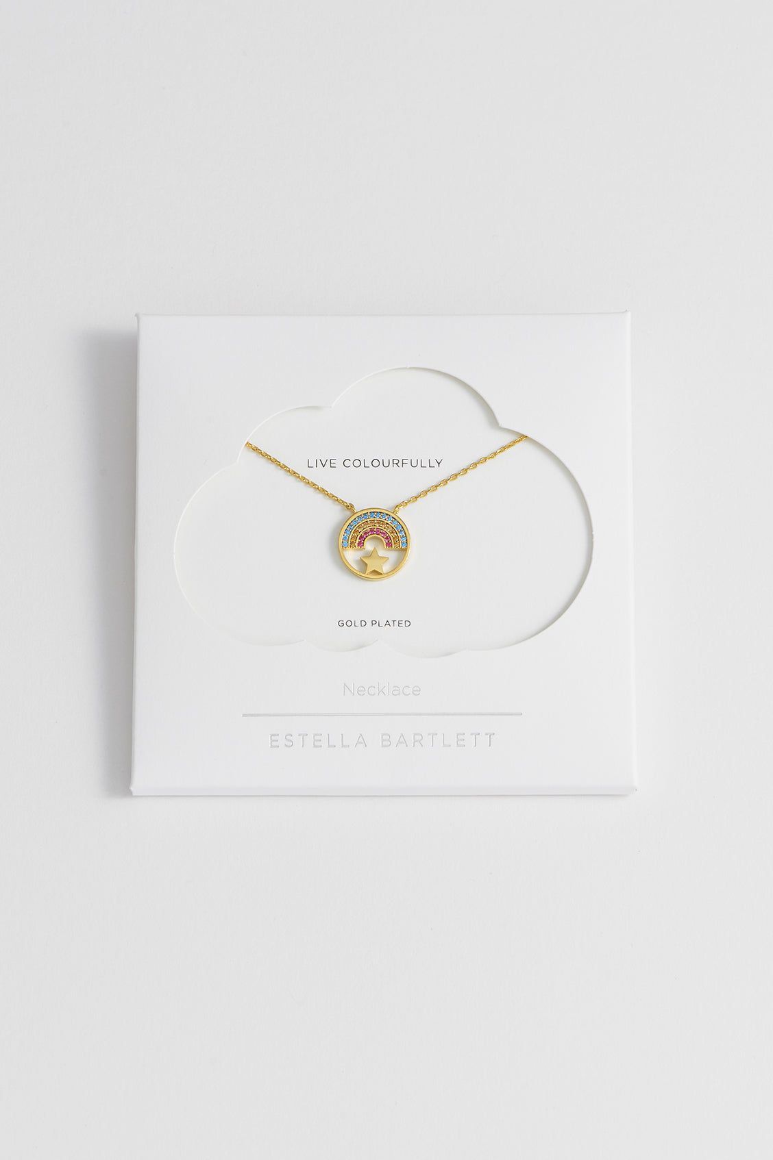 Brighten up your outfit with our gold plated Rainbow Star Necklace. Featuring a cut-out circle pendant with a star and multi-coloured rainbow, this necklace will instantly add fun and joy to every look.