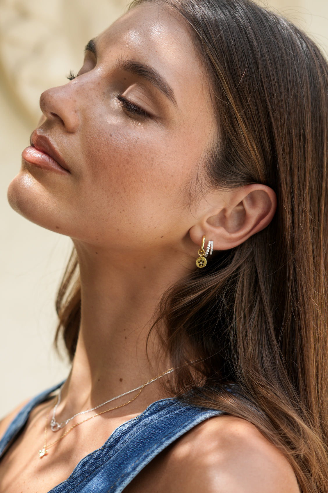 A new take on our best-selling Illusion hoops, the silver-plated Heart and CZ Double Illusion Huggie Hoops feature one row of CZs next to a row of hearts. These are a must-have for when you want a stacked look without the need for any extra piercings, adding a touch of sparkly romance to your look.