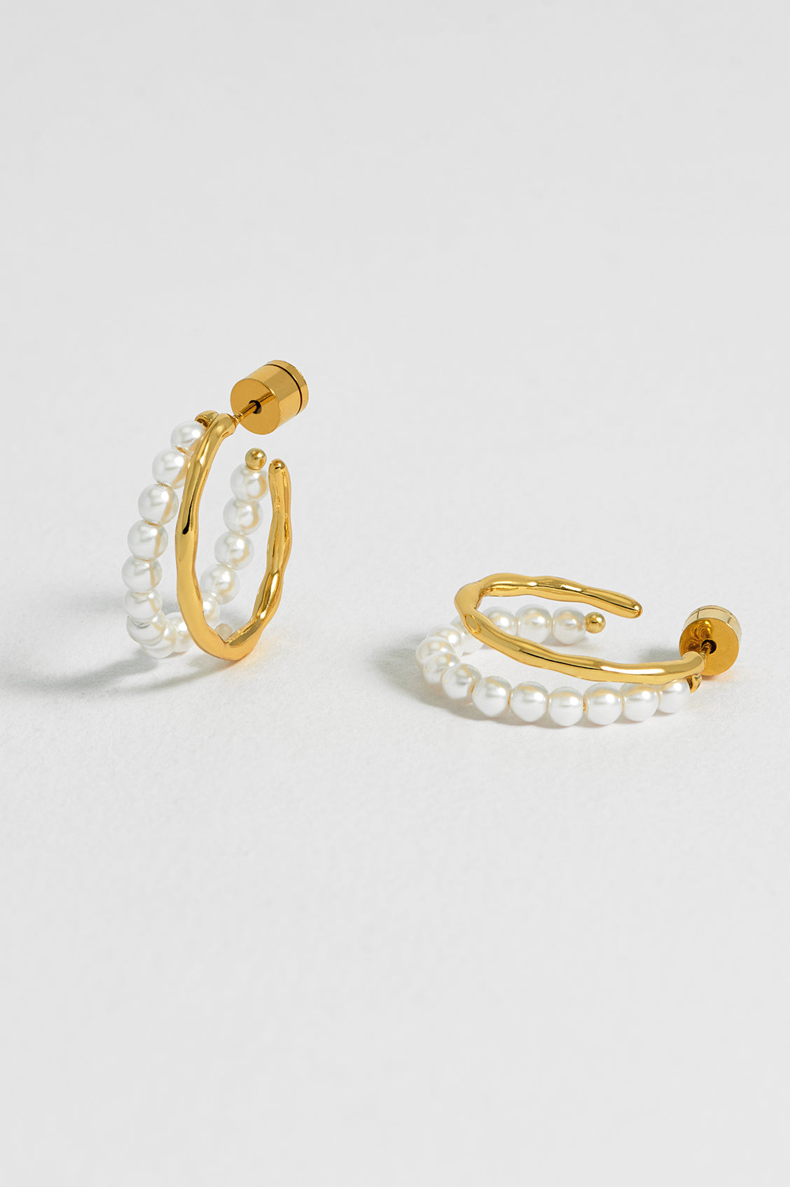 Two hoops in one – and no extra piercings needed! Transform your look in just one simple step with our gold-plated Pearl and Molten Metal Double Illusion Hoops.